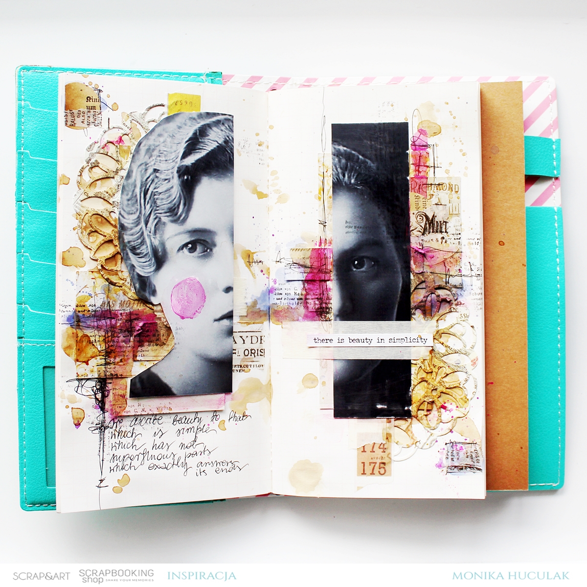 Chciałam Wam pokazać kolejną stronę w moim art żurnalu. Prostą, ale całkowicie kompletną, z odrobiną koloru, jakimiś stemplami, kawałkami papieru i taśmy oraz krótkim tekstem. Wykorzystałam farbki akwarelowe od Primy, żeby dodać koloru. Użyłam też skrawków primowych papierów i naklejek od Tima Holtza - myślę, że razem świetnie współgrają. Ten wpis, wychodzi prosto z mojej duszy, bez żadnych ograniczeń, tak żeby pokazać historię, która miała być po prostu, opowiedziana.